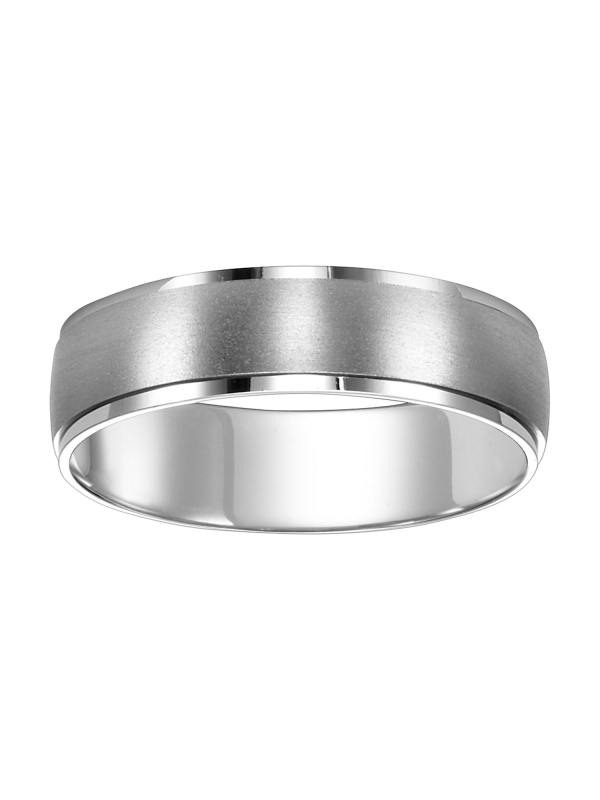 Men's wedding band with satin finish and flat edges with low dome profile Available In: 18K Yellow Gold,18K White Gold,14K Yellow Gold,14K White Gold,Platinum,Palladium