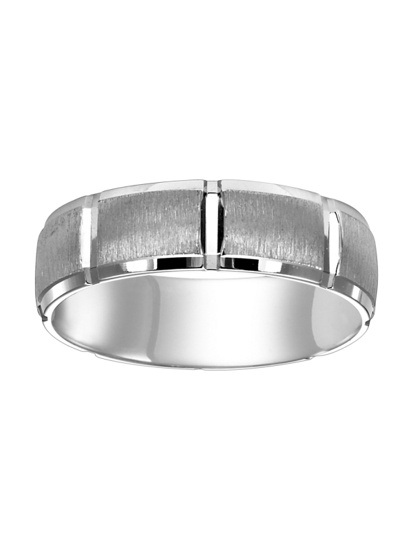 Geometric lines inspired the design of this low-domed style, Comfort Fit wedding band enhanced with a satin finish and beveled edge Available In: 18K Yellow Gold,18K White Gold,14K Yellow Gold,14K White Gold,Platinum,Palladium