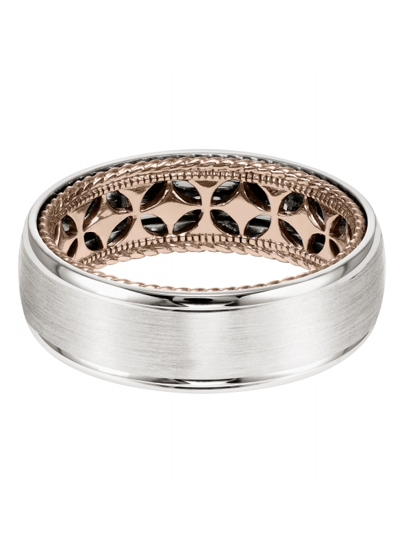 Men's Wedding Band with diamond pattern and rope edge inside and dome profile with round edge. Available in multiple white, yellow and rose gold color combinations. Available In: Rose Gold - Price does not include center stone.