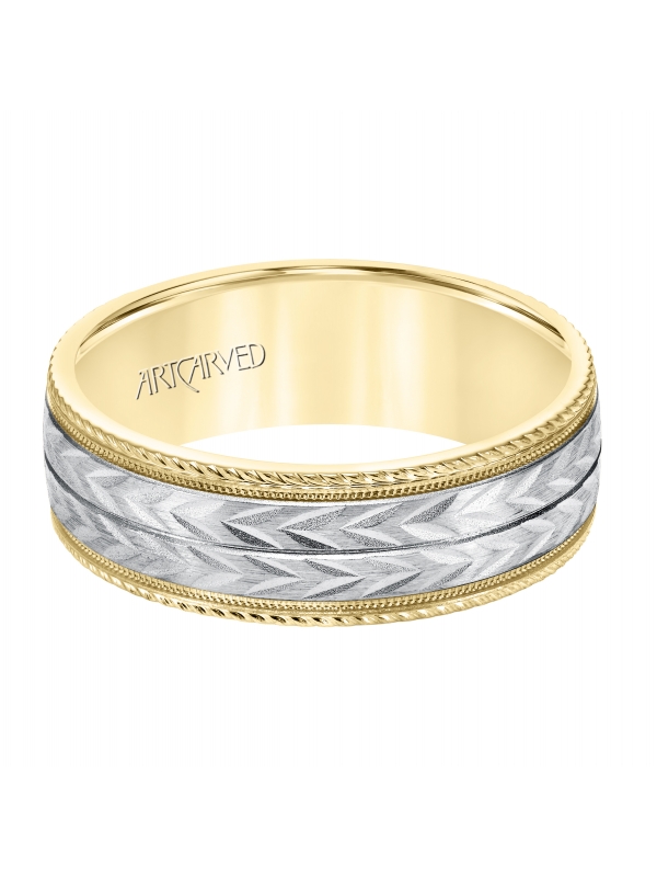 7MM Comfort Fit Wedding Band with a Multiple Directional Wheat Motif and Milgrain Accent with Rope Edges - Price does not include center stone.