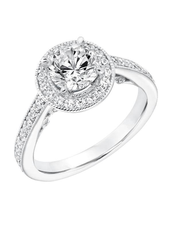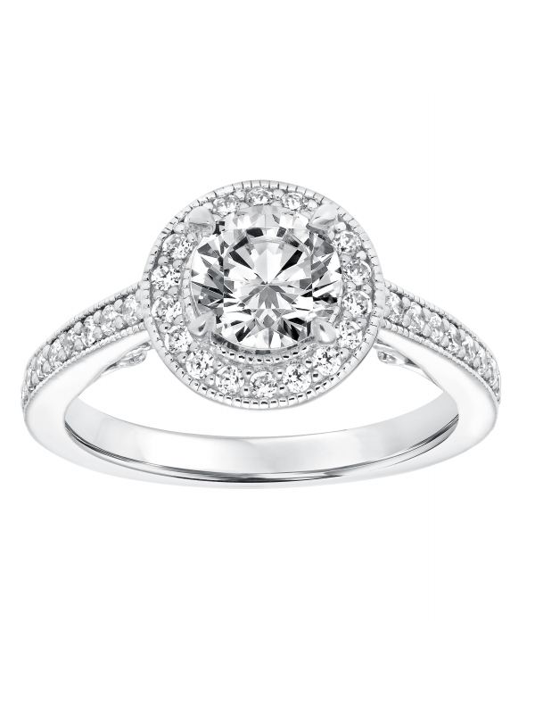Diamond Halo Engagement Ring with Diamond Shank and Milgrain Detail Center stone not included.