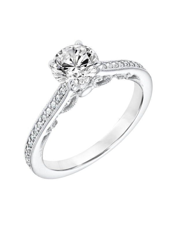 Diamond Prong Set Engagement Ring with Diamond Shank and Milgrain Detail Center stone not included.