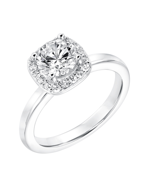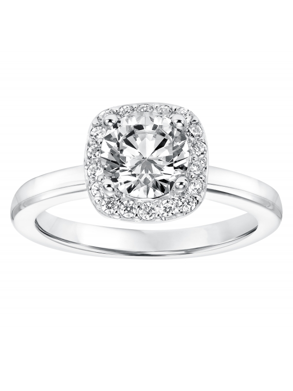 Diamond Prong Set Halo Engagement Ring with Polished Shank Center stone not included.