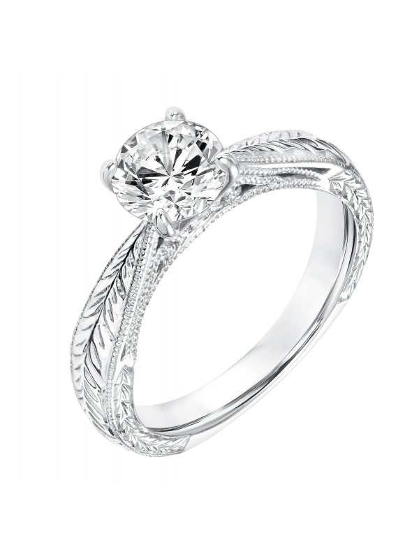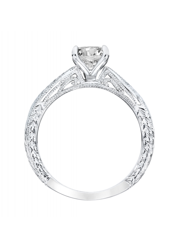 Diamond Solitaire Engagement Ring with Engraved Shank and Milgrain Detail Center stone not included.