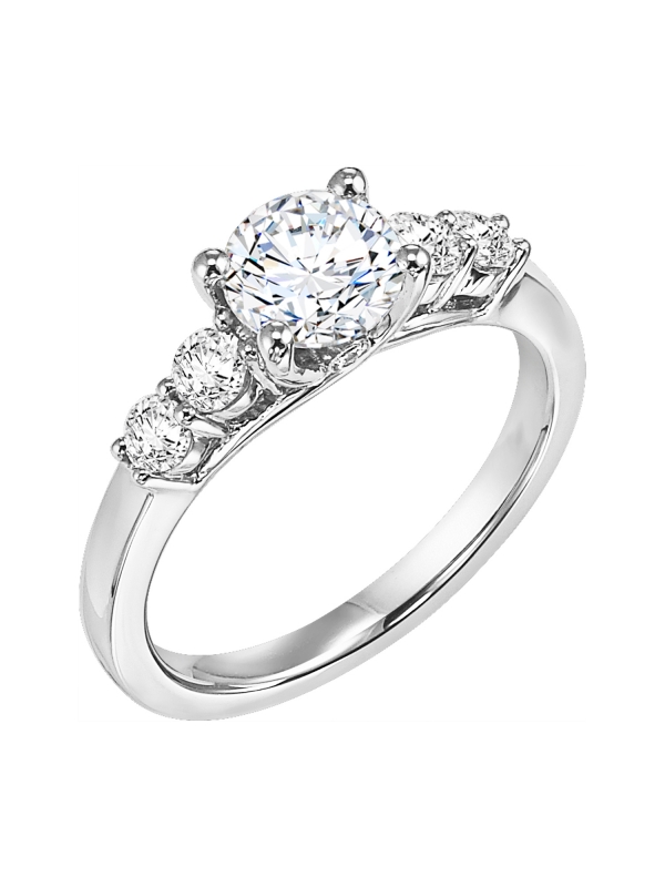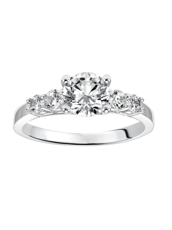 Bold and beautiful, this engagement ring features three prong set diamonds on each side of the center stone for maximum sparkle Center stone not included.