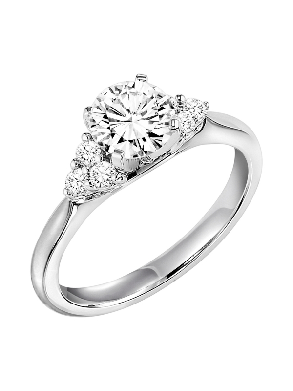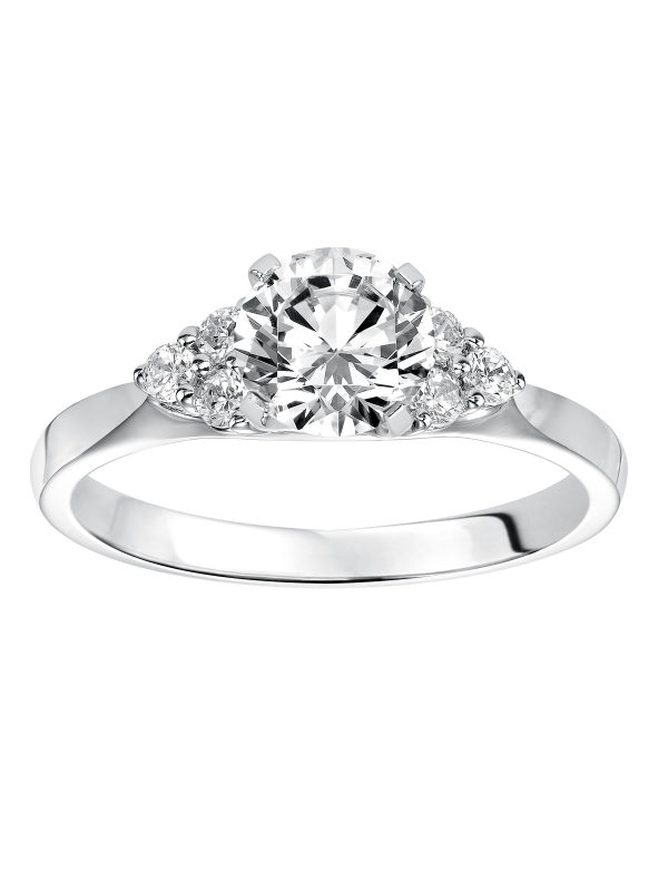 Timeless in design, this engagement ring features a round center stone accented by a striking 3-stone diamond cluster on each side along with a high polished band Available In: Diamond,18K Yellow Gold,18K White Gold,14K Yellow Gold,14K White Gold,Platinum,Palladium Center stone not included.