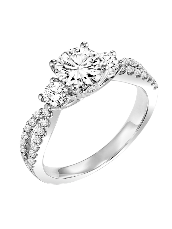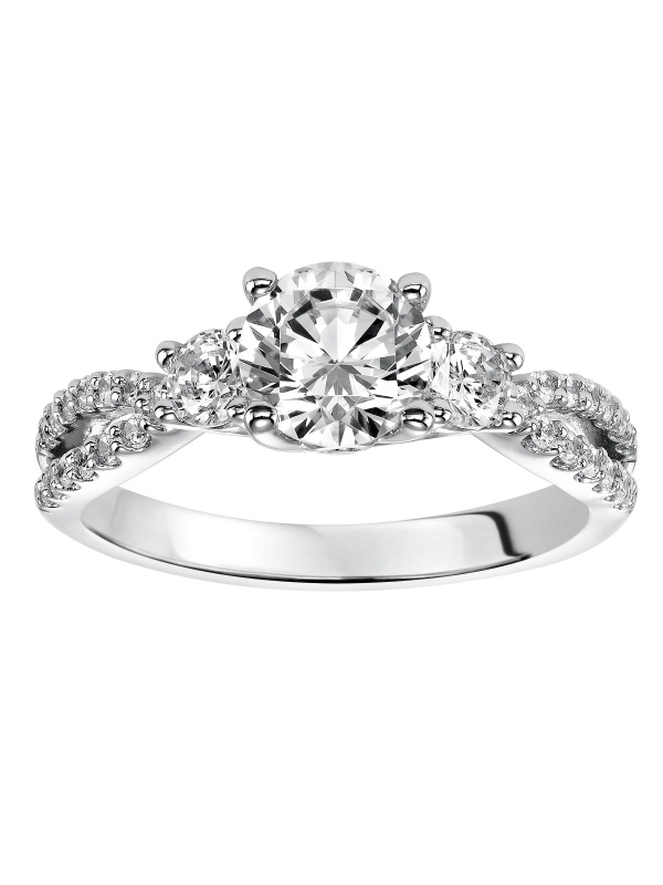 This glamorous 3-stone diamond engagement ring features a split diamond prong set band for a luxurious look Available In: Diamond,18K Yellow Gold,18K White Gold,14K Yellow Gold,14K White Gold,Platinum,Palladium Center stone not included.