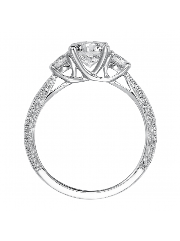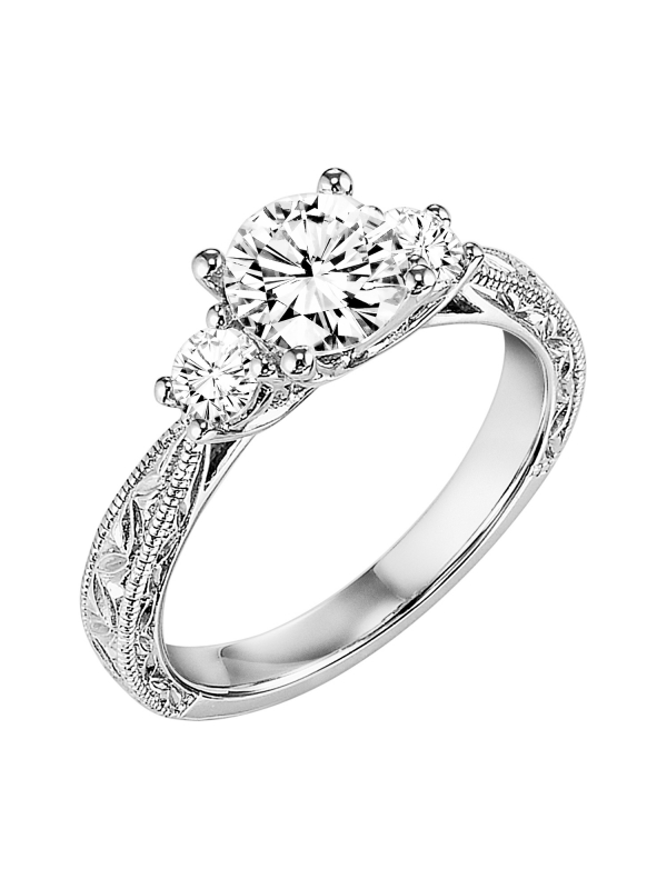 Finely crafted, beautiful engraving graces this 3-stone diamond engagement ring for a vintage chic look Available In: Diamond,18K Yellow Gold,18K White Gold,14K Yellow Gold,14K White Gold,Platinum,Palladium Center stone not included.