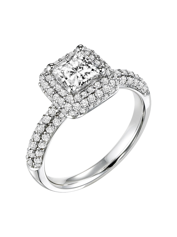 This breathtaking multi-row diamond pave halo and band gracefully accentuate the oval cut diamond center stone and create a aura of intense sparkle Center stone not included.