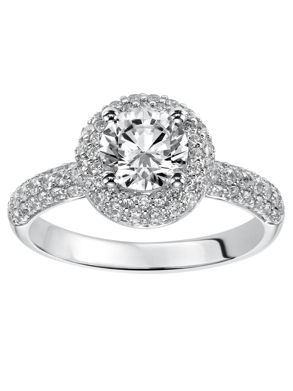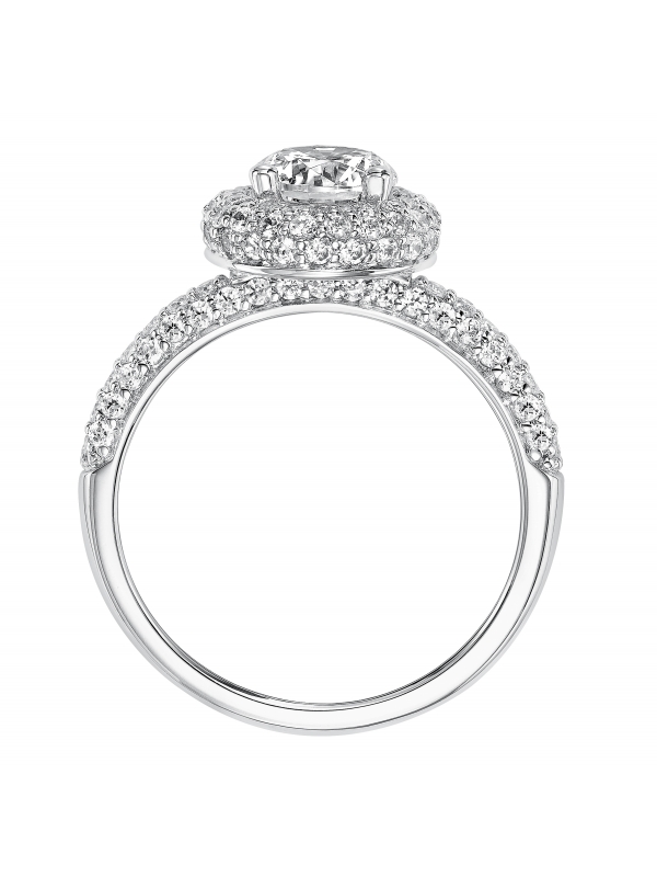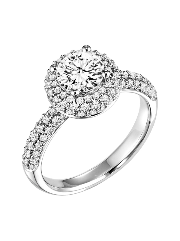 This breathtaking multi-row diamond pave halo and band gracefully accentuate the oval cut diamond center stone and create a aura of intense sparkle Center stone not included.