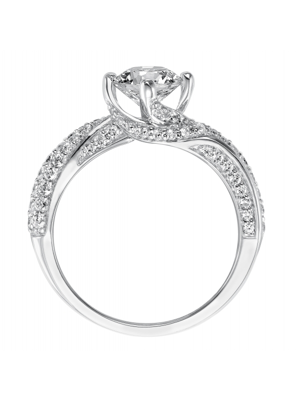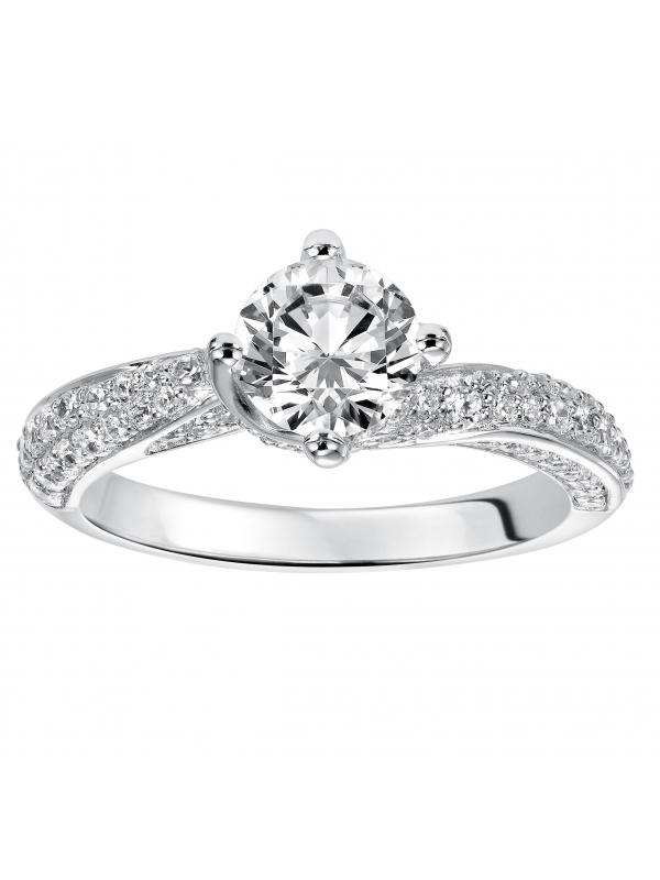 Gorgeous curves of diamond pave grace the band of this diamond engagement ring for a romantic look Center stone not included.