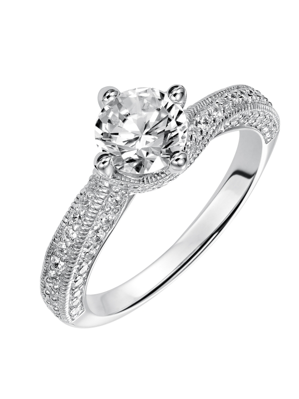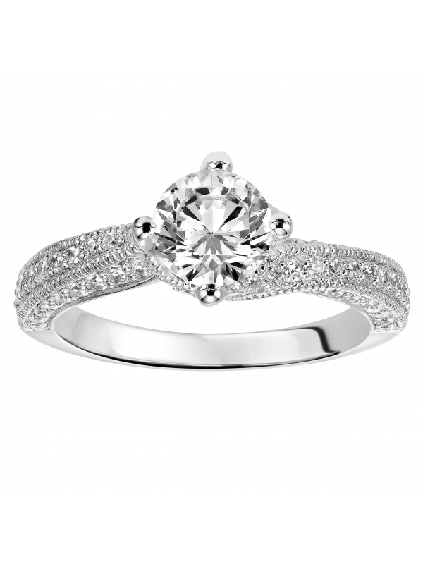 Modern meets vintage chic with this stunning diamond prong set and milgrain engagement ring Center stone not included.