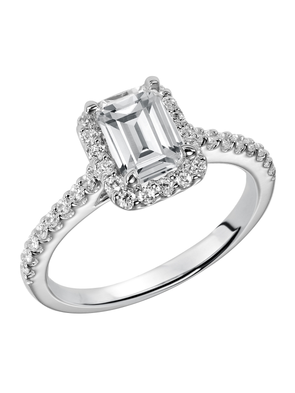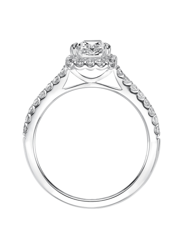This timeless engagement ring features a diamond exquisitely enhanced with a prong set diamond halo and band Center stone not included.