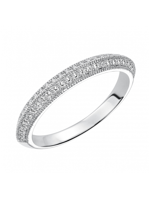 Wedding band with bead set, round diamonds and milgrain enhanced, knife-edge shank.
