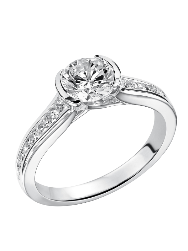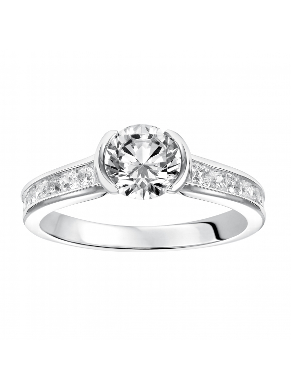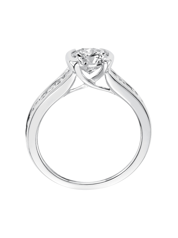This stunning round bezel set diamond is perfectly paired with a channel set diamond band for a sophisticated, timeless look Center stone not included.