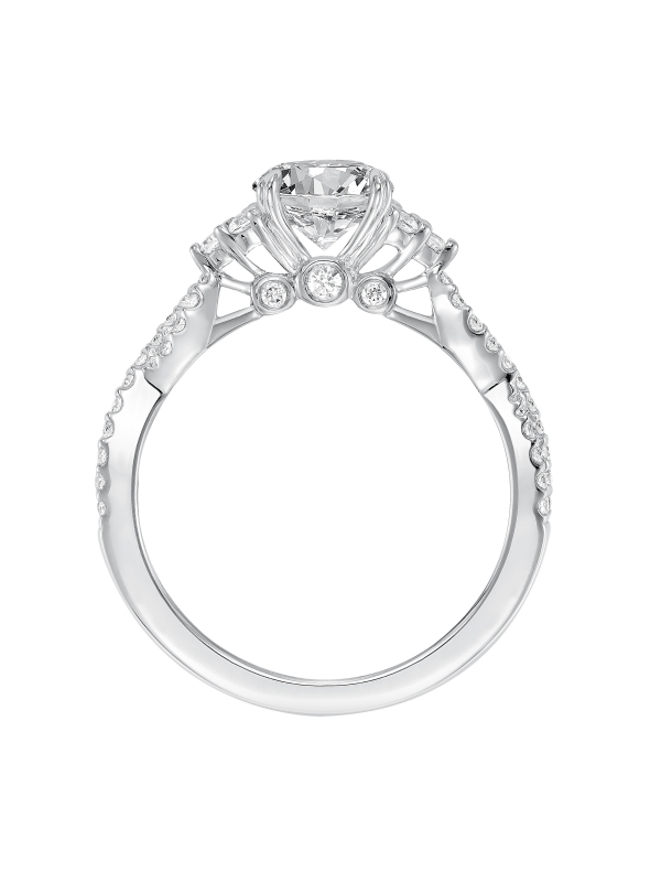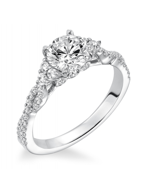 Diamond prong set with diamond cluster and twisted shank engagement ring Center stone not included.