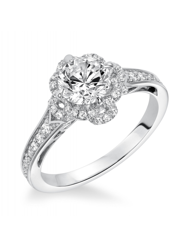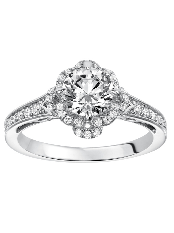 Diamond Prong Set Halo with Filgree Accent Engagement Ring Center stone not included.