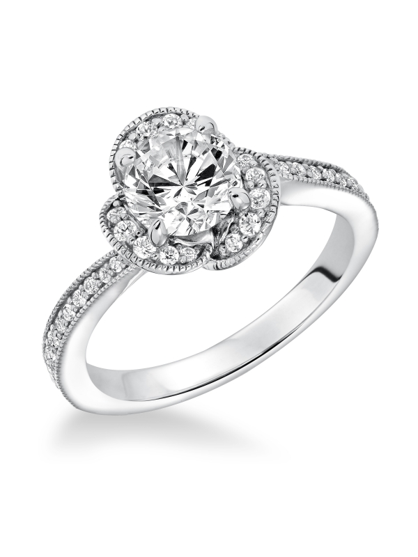 Diamond Prong set Floral Halo with Milgrain Enagement Ring Center stone not included.