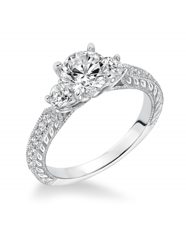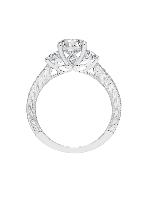 Engraved Three Stone with Milgrain Engagement Ring Center stone not included.