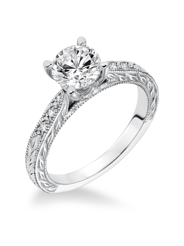 Engraved with Milgrain Engagement Ring Center stone not included.