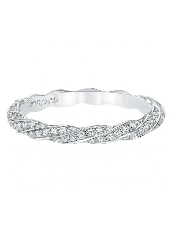 Contemporary prong set delicate twisted diamond eternity band. Available In: Diamond - Price does not include center stone.