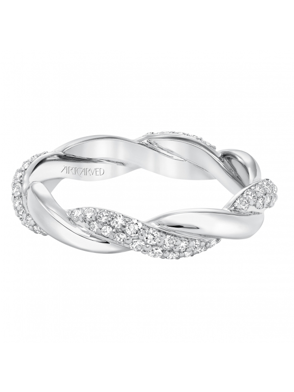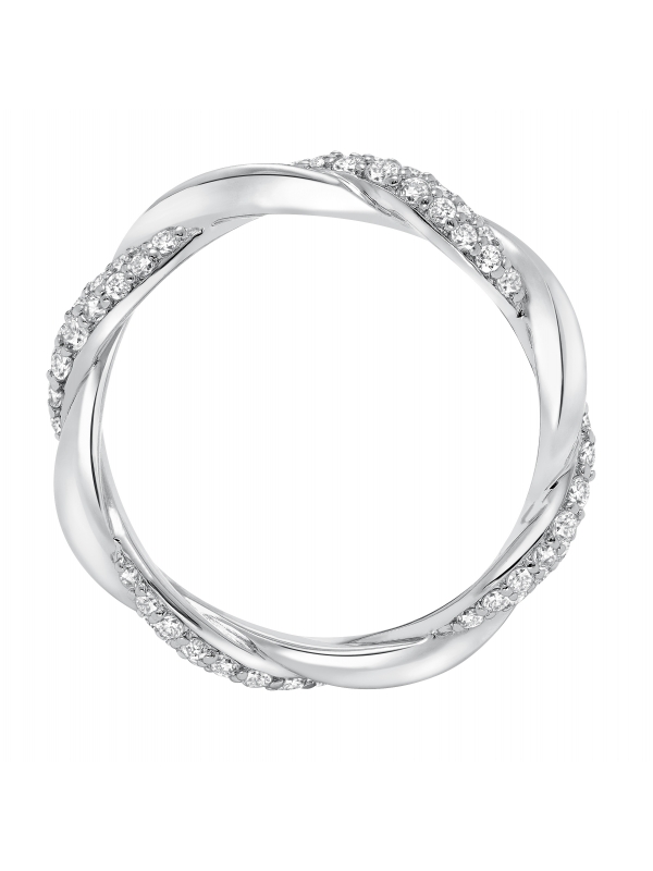 Contemporary pave diamond and gold twisted band. Can be worn as stackable ring, wedding or anniversary band. Available in white, yellow and rose gold. Available In: Diamond - Price does not include center stone.