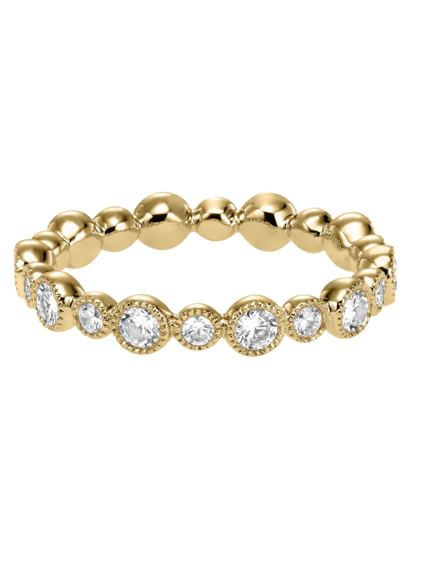 Contemporary Bezel Set Alternating Size Diamond Eternity Band with milgrain detail. Can be Worn as Stackable Ring, Wedding or Anniversary Band. Available In: Diamond - Price does not include center stone.