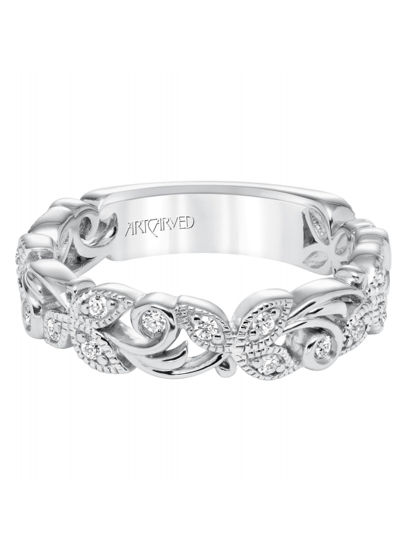 Diamond Anniversary Band with Leaf and scroll accents with Milgrain - Price does not include center stone.