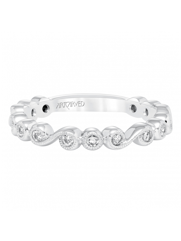 Stackable Band with Bezel set Diamonds and Milgrain - Price does not include center stone.