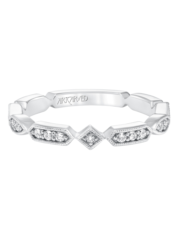 Vintage Diamond Prong Set Band with Hand Milgrain. Can Be Worn as Stackable Ring Wedding or Anniversary Band. - Price does not include center stone.