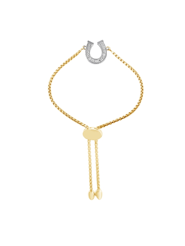 925 SS CZ HORSE SHOE FRIENDSHIP BRACELET 18K YG AND RHODIUM FINISH