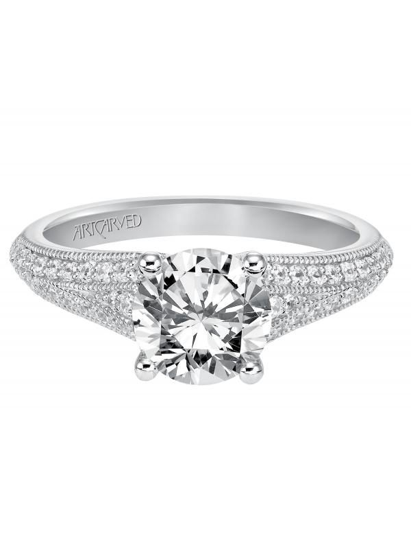 Prong Set with Milgrain Engagement Ring Available In: Platinum,Palladium - Price does not include center stone.