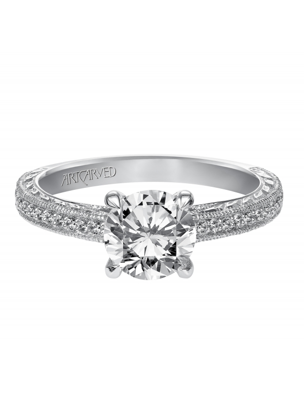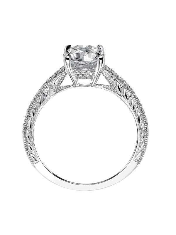 Diamond engagement ring with engraved shank featuring milgrain borders Available In: Platinum,Palladium - Price does not include center stone.
