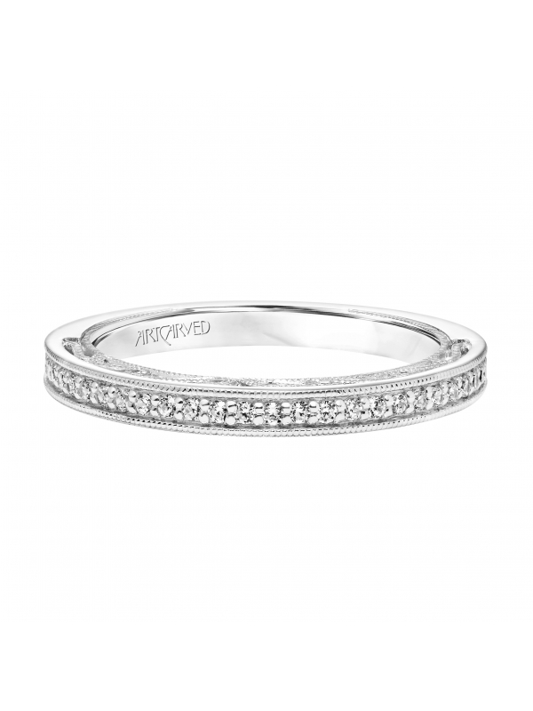 Diamond Wedding Band with Diamond Accented Floral Filigree and Hand Milgrain Detail to Match 31-V760 - Price does not include center stone.