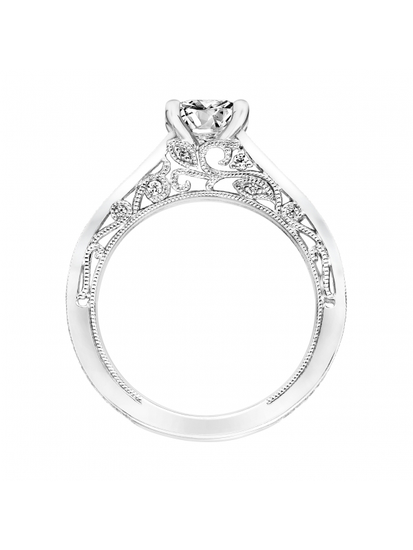 Vintage Diamond Prong Set Engagement Ring with Pinched Diamond Shank, Floral Filigree with Diamond Accents and Hand Milgrain Detail - Price does not include center stone.