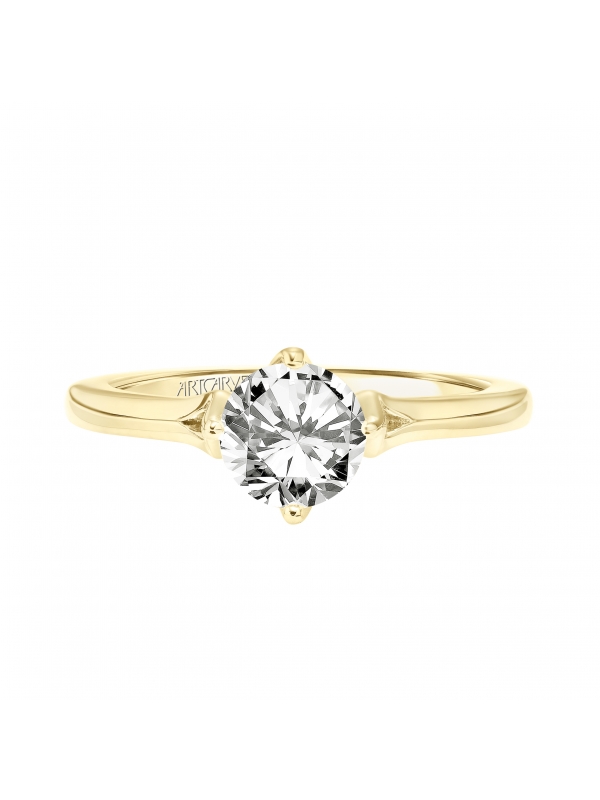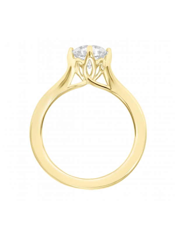 Floral Inspired Diamond Solitaire Engagement Ring with Petal Motif Basket and Polished Shank - Price does not include center stone.