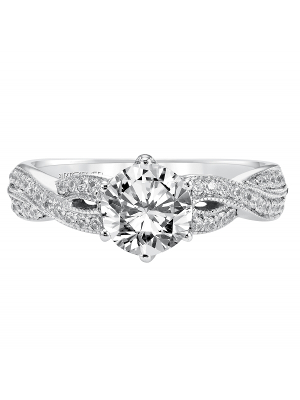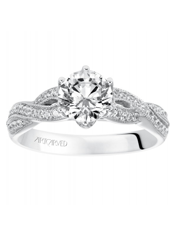 Diamond engagement ring with diamond enhanced, twisted shank design and cathedral setting. Available In: Diamond,18K Yellow Gold,18K White Gold,14K Yellow Gold,14K White Gold,Platinum,Palladium - Price does not include center stone.