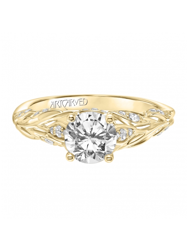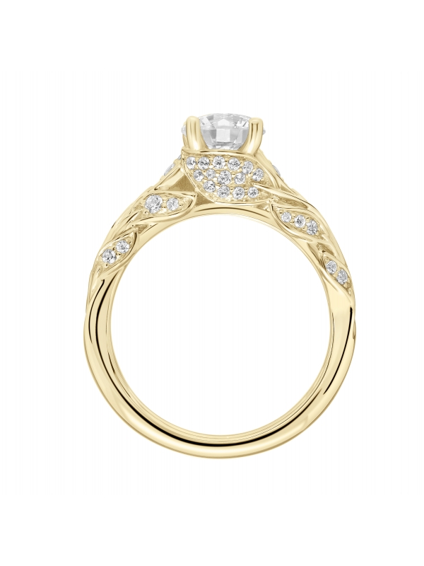 Floral Inspired Diamond Engagement Ring with Diamond Accented Petal Motif - Price does not include center stone.