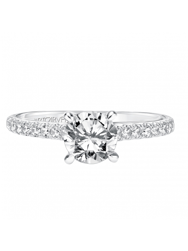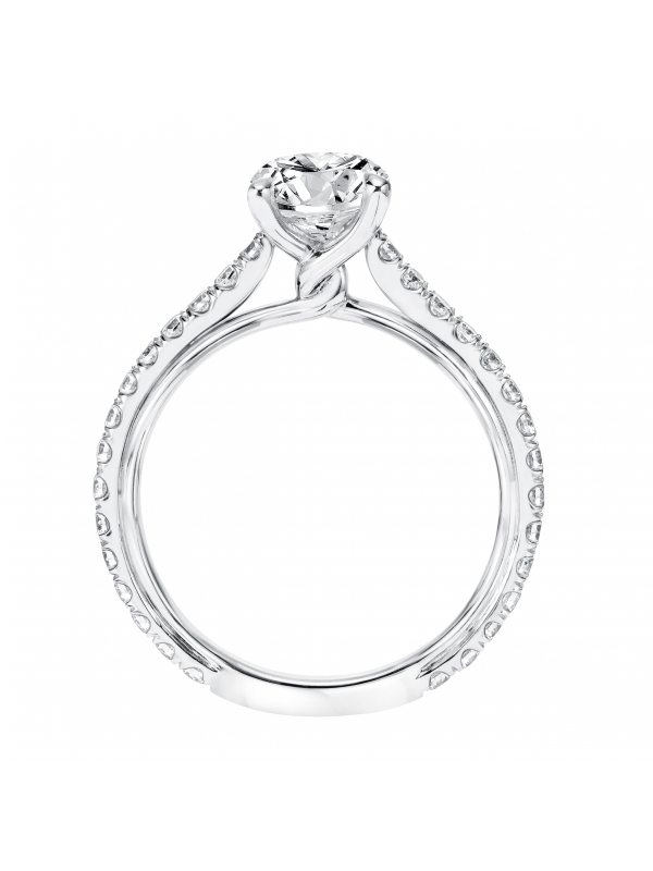 Contemporary Diamond Prong Set Engagement Ring with Diamond Shank and Inside Twist Accent - Price does not include center stone.
