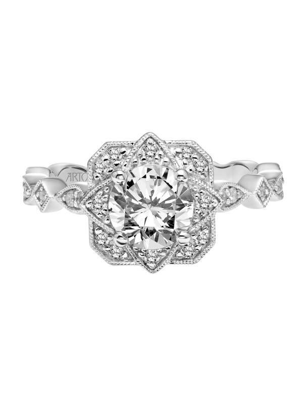 Vintage Inspired Diamond Halo Engagement Ring with Multi-Shaped details and Milgrain accent - Price does not include center stone.