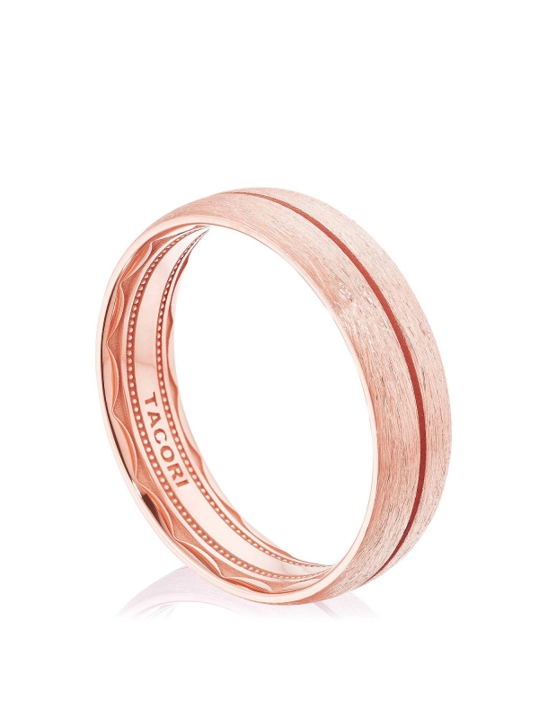 The exterior of this ring is genuinely sophisticated, with a brushed finish and a beveled accent line circling around the softly-rounded top. The interior features sculpted crescent detail with a soft-comfort fit for all-day wearability.