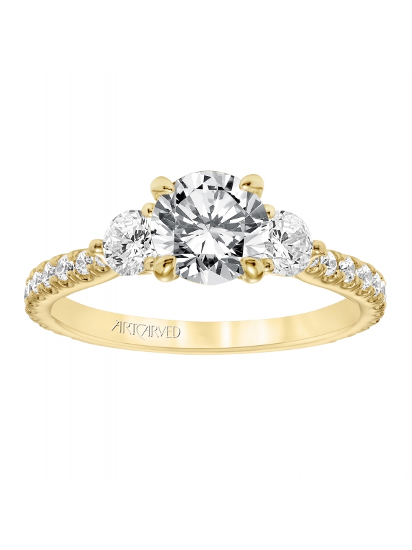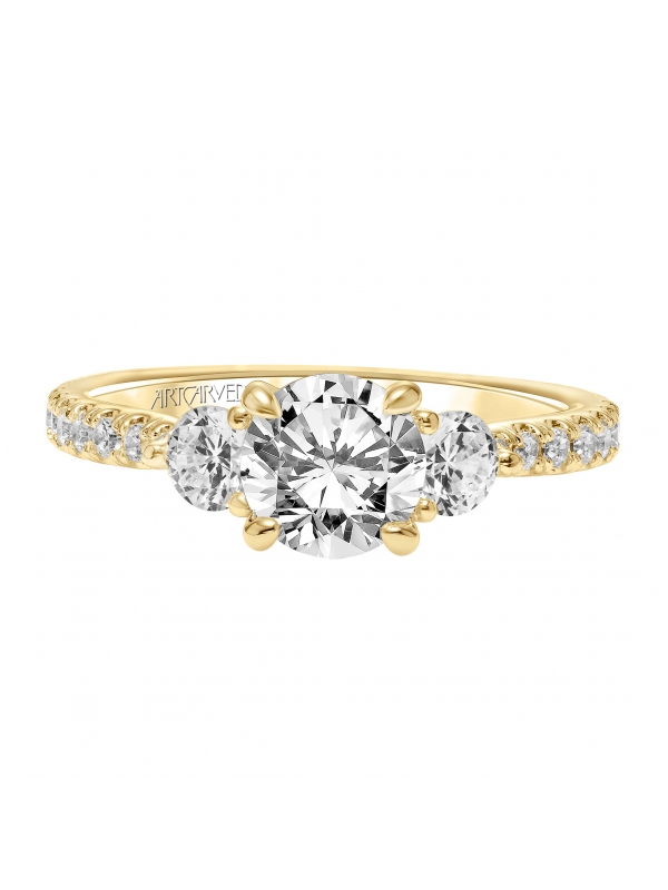 Classic Three Stone Diamond Engagement Ring with Diamond Shank and Diamond Accented Gallery - Price does not include center stone.