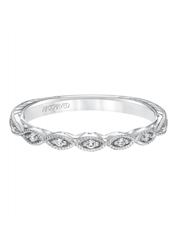 Diamond Hand Engraved and Milgrain Wedding Band - Price does not include center stone.