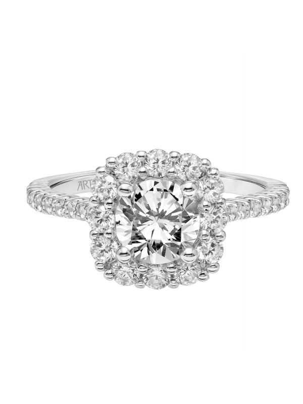 Diamond Cushion Halo Engagement Ring with Diamond Shank - Price does not include center stone.