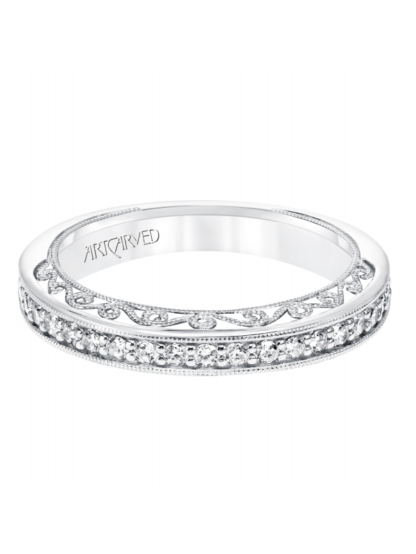 Diamond with Scrollwork Filigree and Hand Milgrain Wedding Band to Match 31-V731GRW - Price does not include center stone.