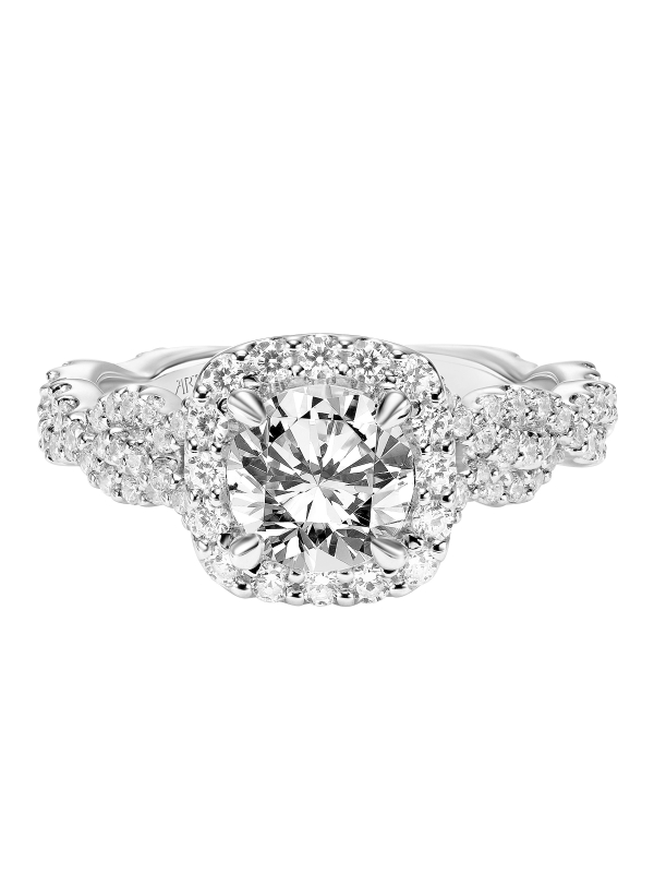 Contemporary Diamond Cushion Halo Engagement Ring with Diamond Twisted Shank - Price does not include center stone.