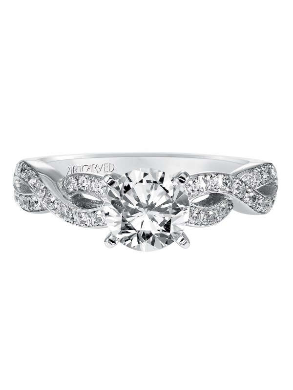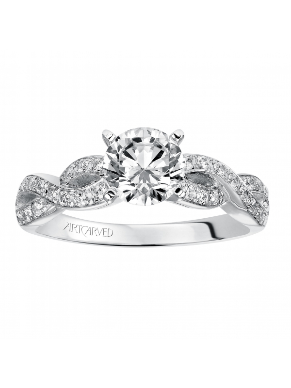 Diamond engagement ring with round center stone and pave set diamonds Available In: Diamond,18K Yellow Gold,18K White Gold,14K Yellow Gold,14K White Gold,Platinum,Palladium - Price does not include center stone.