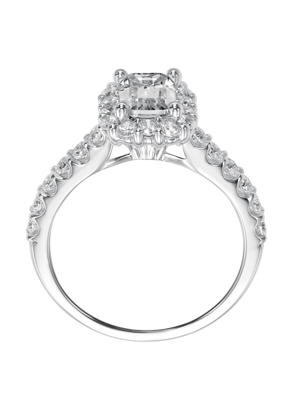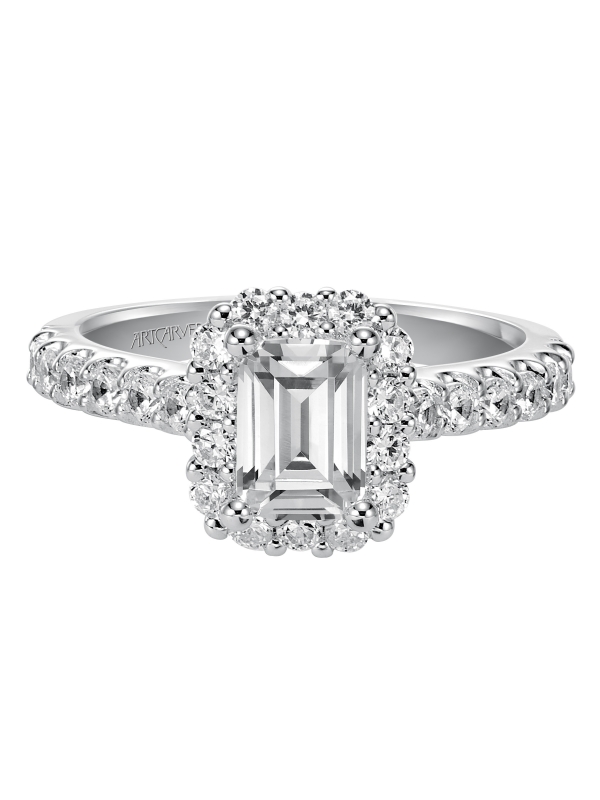 Diamond engagement ring with diamond shared prong halo and straight shank setting. - Price does not include center stone.