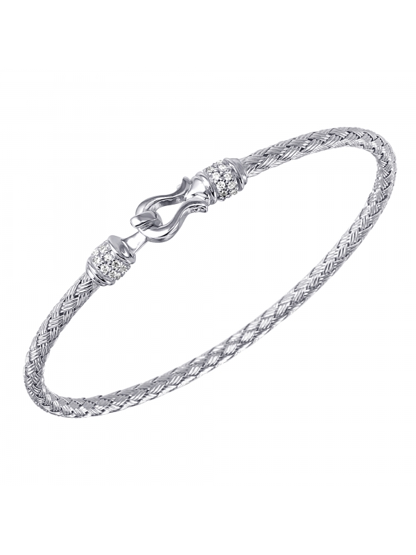 925 SS 3MM WOVEN HARP HOOK CZ BANGLE RHODIUM FINISH