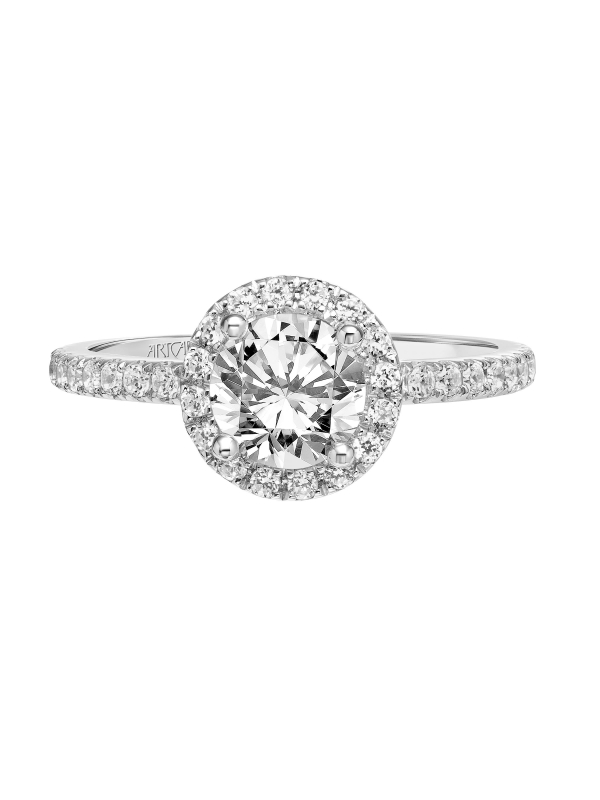 Diamond Halo Engagement Ring with Diamond Accented Collar and Diamond Shank - Price does not include center stone.